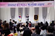 코리아타임뉴스 사회팀 | 용인특례시는 1일 시청 컨벤션홀에서 ‘2025년 제32회 용인특례시 전국 독서감상문 대회’와 ‘2025년 독서마라톤 대회’ 시상식을 개최했다. 올해 독서감상문 대회엔 총 981편이 접수됐으며, 심사위원단은 내용 이해도‧감정 표현‧문장력 등을 기준으로 총 26편을 수상작으로 선정했다. 도서관은 지난 8월 11일부터 9월 21일까지 ‘소년이 온다’, ‘모우어’, ‘비스킷’ 등 용인특례시 올해의 책을 대상으로 한 감상문을 접수했다. 대상은 ‘모우어’를 읽고 정교한 문장력과 탁월한 묘사력으로 미래 사회의 인간다움에 관해 깊이 있는 성찰을 담아낸 안경선 씨가 차지했다. 최우수상은 문예서‧정희정(초등부), 김단아 양(청소년부), 송지은‧박진현‧김성현 씨(일반부)가 차지했다. 우수상에는 8명, 장려상에는 11명이 뽑혔다. 책을 읽고 서평을 작성해 읽은 양을 코스로 환산하는 시민 참여형 독서 캠페인인 독서마라톤 대회엔 올해 5735명이 참여해 2021명이 완주했다. 도서관은 이 가운데 기록과 성취도를 기준으로 18명(팀)을 수상자로 선정했다. 독서마라