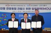 코리아타임뉴스 노승선 기자 | 안동시는 11월 28일 시청 소통실에서 세계적인 호텔․리조트 그룹인 하드락 인터내셔널(Hard Rock International, Imc.) 및 ㈜니즈퍼샌드와 ‘안동 하드락 호텔 건립을 위한 상호협력 양해각서(MOU)’를 체결했다. 이번 협약은 한국문화테마파크와 안동문화관광단지 일원에 글로벌 브랜드인 하드락 호텔(Hard Rock Hotel)을 유치함으로써, 지역 관광산업 경쟁력을 강화하고 지역경제 활성화를 도모하기 위해 마련됐다. 특히 이번 하드락 호텔 유치는 인근 안동국제컨벤션센터와의 시너지가 기대된다는 점에서 주목받고 있다. 시는 글로벌 브랜드 호텔과 연계한 MICE 관광 기반을 구축함으로써 대규모 국제행사 유치 경쟁력을 확보하고, 고부가가치 관광객 유입을 확대한다는 계획이다. 이날 협약에 따라 세 기관은 ▲성공적인 사업 추진을 위한 협력체계 구축 ▲신속한 행정 지원 ▲제반 여건 조성 및 사업 추진 등에 역량을 집중하며 구체적인 실행 방안을 협의해 나갈 예정이다. 권기창 안동시장은 “세계적인 브랜드인 하드락 호텔의 유치는 안동의 관광 지형을 넓히고 도시 브랜드를