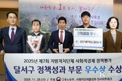 코리아타임뉴스 노승선 기자 | 대구 달서구는 고용노동부와 사회적경제활성화네트워크가 공동 주최한 ‘2025년 지방자치단체 사회적경제 정책평가’에서 정책성과 부문 우수 자치단체로 선정됐다고 밝혔다. 이번 수상은 대구 지역 기초자치단체 중 유일한 성과다. 달서구는 지난 7월 ‘사회적기업 육성 우수 자치단체’에 이어 또다시 우수기관으로 선정되며, 올해 실시된 사회적경제 관련 모든 평가에서 우수 등급을 받은 2관왕의 쾌거를 이뤘다. 이번 평가는 사회적경제의 현재를 진단하고 향후 발전 방향을 모색하기 위해 실시됐으며, ▲ 정책기반 정비, ▲ 지원 수준, ▲ 정책성과, ▲ 거버넌스 수준 등 4개 분야, 17개 지표를 기준으로 전국 광역 및 기초자치단체 가운데 총 11개 기관이 우수 자치단체로 선정됐다. 달서구는 사회적경제 연도별 활성화 계획 수립 등 정책기반 정비, 찾아가는 사회적경제 마켓·사업개발비 지원 등 다양한 현장형 지원 정책, 중앙부처 연계 기업지원 통합설명회 개최, 한국사회적기업진흥원과의 SVI 교육 연계 등 거버넌스 협력 강화 등 모든 분야에서 고르게 높은 평가를 받았다. 특히, 달서구는 대구 기초