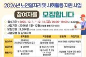 코리아타임뉴스 경기취재본부 | 광명시가 어르신의 건강한 노후와 사회참여 확대를 위해 노인 일자리 참여 기회를 넓힌다. 시는 오는 12월 1일부터 12일까지 ‘2026년 노인일자리 및 사회활동 지원사업’ 참여자 3천384명을 모집한다. 내년도 사업 예산은 전년보다 1억 7천400만 원이 늘어난 162억 원이 편성됐다. 이번 사업은 ▲노인 공익 활동 ▲노인 역량 활용 ▲공동체 사업단 ▲취업 지원형 등 네 가지 유형으로 운영한다. 노인공익활동은 65세 이상 기초·직역연금 대상 어르신이 지역 환경정비, 공공시설 지원 등 공익 활동에 참여하는 사업이다. 노인역량활용은 돌봄·안전 등 도움이 필요한 가정이나 시설에 서비스를 제공하는 역할을 맡으며, 공동체 사업단은 60세 이상 어르신이 소규모 매장 운영 또는 전문사업단 활동으로 경제활동을 이어갈 수 있도록 지원한다. 취업지원형은 구인 기업과 어르신을 직접 연계해 민간 분야에서 일자리를 찾을 수 있도록 돕는다. 참여를 원하는 어르신은 주소지 동 행정복지센터 또는 7개 수행기관(광명시니어클럽, 대한노인회 광명시지회, 소하노인종합