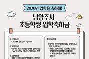 코리아타임뉴스 경기취재본부 | 남양주시는 오는 3월부터 2026년 초등학교에 입학하는 아동의 새로운 출발을 응원하기 위해 입학축하금 지원 사업을 추진한다고 3일 밝혔다. 이번 사업은 초등학교 입학이라는 중요한 생애 전환기를 맞는 아동과 가정을 실질적으로 지원하기 위해 마련한 교육복지 정책의 일환으로 추진됐다. 지원금은 지역화폐로 지급해 교육지원과 동시에 지역 내 소비 촉진의 효과를 도모할 예정이다. 지원 대상은 입학일 기준 남양주시에 주민등록을 두고, 일반 초등학교 또는 대안교육기관에 2026학년도 1학년으로 최초 입학하는 학생이다. 학생 1인당 남양주사랑상품권(지역화폐카드) 10만 원이 지급될 예정이다. 신청은 3일부터 8월 31일까지 남양주시청 누리집 또는 거주지 읍면동 주민센터 방문을 통해 가능하다. 아동과 함께 주민등록이 등재된 부모 또는 사실상 양육자가 신청할 수 있다. 신청자는 본인 명의 휴대전화에 경기지역화폐 애플리케이션을 설치 후 남양주사랑상품권을 등록해야 하며, 지원금은 신청일이 속한 달의 다음 달 말일에 지급된다. 지급된 입학축하금은 지급일 기준으로 3년 이내 사용해야 한다. 사용