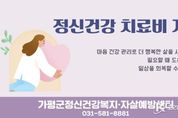 코리아타임뉴스 기동취재팀 | 가평군정신건강복지센터는 정신질환 치료 과정에서 발생하는 병원비 부담을 덜어주기 위해 치료비 지원사업을 운영중이라고 3일 밝혔다. 치료비 지원사업은 연령대와 치료 상황에 따라 △마음건강케어 △청소년‧청년 마인드케어 △어르신 마인드케어 등 3개 유형으로 나뉜다. ‘마음건강케어’는 조현병, 우울‧불안 등 정신질환으로 진단받은 주민이 대상이다. 질병코드 F20~F48로 진단받고 정신건강복지센터에 등록된 기준 중위소득 120% 이하 주민이라면 신청할 수 있다. 본인부담금과 본인 일부부담금을 포함해 연간 최대 36만원의 치료비를 지원한다. ‘청소년‧청년 마인드케어’는 15세부터 34세(1991~2011년생)를 위한 사업이다. 질병코드 F20~F48로 진단받고 최근 5년 이내(2022~2026년) 처음 진단받은 경우 신청 가능하며, 본인 일부부담금에 대해 1인당 최대 36만원을 지원한다. ‘어르신 마인드케어’는 65세 이상(1961년 이전 출생) 주민을 대상으로 한다. 우울증 등 질병코드 F32~F39로 진단받은 경우 본인 일부부담금에 대해 1인당 최대 36만원까지 치료비를 지원한다