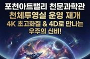 코리아타임뉴스 윤광희 기자 | 포천문화관광재단이 운영하는 포천아트밸리 천문과학관이 약 1년간의 준비와 개선 사업을 마치고, 3월 4일부터 새롭게 단장한 천체투영실 운영을 재개한다. 2014년 개관한 포천아트밸리 천문과학관은 연간 약 30만 명의 관람객이 찾는 경기 북부 대표 과학문화시설로 자리 잡아 왔다. 그러나 천체투영실 시설 노후화로 관람객 이용에 불편이 발생함에 따라, 포천문화관광재단은 지난해부터 시설 개선 사업을 추진했다. 이번 개선 사업은 ‘오감을 자극하는 몰입형 우주 체험’을 목표로 진행됐다. 기존 장비를 전면 교체하고 4케이(K) 초고해상도 영상 시스템을 도입해 실제 우주 공간에 있는 듯한 생생한 시각적 경험을 제공하도록 구성했다. 또한 영상 흐름에 따라 좌석이 움직이는 모션 장비를 설치해 4디(D) 체험형 콘텐츠를 구현했다. 신규 영상 콘텐츠 ‘콤콤(미지의 행성을 찾아 떠나는 우주 여행)’을 비롯해 스카이다이빙, 달 탐사 등 다양한 체험형 영상을 순차적으로 상영할 예정이다. 이를 통해 어린이들에게는 우주와 과학에 대한 꿈과 호기심을, 성인 관람객에게는 색다른 과학문화 체험을 제공할 것으로 기대된다