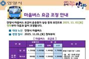 코리아타임뉴스 사회팀 | 안양시는 경기도의 시내버스 요금 인상에 따라 오는 11월 1일 첫차부터 마을버스 요금이 인상된다고 22일 밝혔다. 이번 인상에 따른 교통카드 기준 마을버스의 요금은 ▲일반 1,350원→1,650원(300원 인상) ▲청소년 950원→1,160원(210원 인상) ▲어린이 680원→830원(150원 인상)이다. 11월 1일부터 안양시 관할 마을버스 노선에 일괄 적용된다. 안양시는 경기도 전역의 일반형 시내버스 요금이 이달 25일부터 교통카드 기준 현재 1,450원에서 1,650원으로 인상됨에 따라 시내버스와의 요금 형평성을 유지하고, 마을버스 운송업체의 경영 안정과 지속 가능한 대중교통 서비스 제공을 위한 불가피한 조치라고 설명했다. 특히, 그동안 시는 마을버스 요금을 2019년부터 인근 시보다 100원 낮게 유지해 왔으나, 최근 인건비 상승, 차량 유지비 및 유류비 등 운송원가 증가로 업체의 경영난이 가중돼 인상이 결정됐다고 덧붙였다. 시 관계자는 “요금 인상과 함께 배차시간 단축, 노선 개편 등 대중교통 서비스의 품질 향상과 운영 효율화를 지속적으로 추진해 시민의 교통편의를