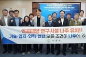 코리아타임뉴스 전남취재본부 | 전라남도 나주시가 정부의 차세대 전력망(K-그리드) 구축 정책에 발맞춰 차세대 전력산업 중심도시로 도약하기 위한 지역 전략 마련에 나섰다. 나주시는 22일 시청 이화실에서 ‘이재명 정부의 에너지 정책과 나주의 역할’을 주제로 정책 간담회를 열고 정부의 전력망 혁신 정책 대응 방향과 기관 간 협력 방안을 논의했다고 밝혔다. 이날 간담회에는 윤병태 시장을 비롯해 전남테크노파크, 녹색에너지연구원, 에너지밸리기업개발원, 한국기계전기전자시험연구원, 한국전자기술연구원, 한국에너지공과대학교, 동신대학교 등 지역 에너지 유관기관과 대학 관계자들이 참석했다. 참석자들은 인공태양(핵융합) 연구시설 유치, 직류(DC) 기반 전력산업 육성, K-그리드 인재 및 창업 밸리 조성 등 주요 과제를 공유하고 R&D, 인프라, 기업 지원, 인재 양성 등 4대 분야별 협력 방안을 집중적으로 논의했다. 또한 간담회 참석자들은 ‘인공태양 연구시설 나주 유치’를 염원하는 퍼포먼스를 진행하며 정부 공모사업 대응 의지를 함께 다졌다. 참석자들은 “나주는 에너지밸리 혁신도시를 중심으로 연구와 산업