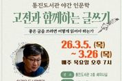 코리아타임뉴스 문화팀 | 김포시 통진도서관은 고전 중심의 독서법과 글쓰기를 알려주는 야간 인문학 프로그램 ‘고전과 함께하는 글쓰기’를 오는 3월 5일부터 3월 26일까지 매주 목요일 오후 7시에 통진도서관 세미나실에서 운영한다고 밝혔다. '고전 한 책 깊이 읽기'의 저자 이권우는 ‘고전과 함께하는 글쓰기’를 통해 맹자의 철학과 중용을 깊이 있게 다루며, 책을 읽으면서 생각을 확장하는 독서법과 단락 중심의 글을 쓰는 방법을 총 4회차에 걸쳐 진행한다. 회차별 주제는 ▲고전 속 맹자의 철학 ▲맹자가 알려주는 우리 시대의 관계성 ▲글쓰기가 쉬워지는 독서법 ▲글쓰기의 첫걸음이다. 참여를 원하는 경우 오는 2월 10일 오전 10시부터 통진도서관 누리집 또는 전화로 신청할 수 있으며, 고전과 글쓰기에 관심있는 성인 20명을 선착순으로 모집한다.