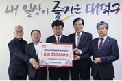 코리아타임뉴스 대전취재본부 | 대전 대덕구는 20일 MG새마을금고 대덕구협의회와 대전청과㈜로부터 ‘2026 대덕물빛축제’의 성공적인 개최를 위한 후원금 각각 1000만원을 전달받았다. 이날 후원금 전달식에는 MG새마을금고 대덕구협의회 정광모 으뜸 이사장, 김태완 대전북부 이사장, 신문인 대청 이사장, 이규영 오정동 이사장과 송인석 대전청과㈜ 대표가 함께 참여해 지역 축제 지원에 뜻을 모았다. MG새마을금고는 신용·공제사업과 함께 다양한 지역공헌 활동을 펼치고 있는 서민 금융협동조합이며, 대전청과㈜는 1953년 설립 이후 70여 년의 전통을 이어온 도매시장법인으로 농산물 유통 분야에서 중추적인 역할을 수행하고 있다. 양 기관은 대덕구 대표 축제의 성공적인 개최를 위해 지속적인 후원을 이어오며 지역사회 문화 활성화에 기여하고 있다. 대덕구 관계자는 “어려운 여건 속에서도 물빛축제를 위해 아낌없는 지원을 해주신 MG새마을금고 대덕구협의회와 대전청과㈜에 깊이 감사드린다”며 “완성도 높은 콘텐츠로 관람객 기대에 부응하겠다”고 했다. 한편 ‘2026 대덕물빛축제’는 4월 4일부터 18일까지 15일