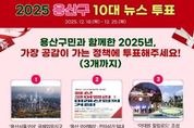 코리아타임뉴스 노승선 기자 | 서울 용산구가 구민이 직접 올해 가장 의미 있었던 정책을 선정하는 ‘2025 용산구 10대 뉴스’ 온라인 투표를 진행한다. 주민 투표를 통해 정책 성과를 돌아보고, 구정에 대한 관심과 공감을 높이겠다는 취지다. 이번 투표에는 총 25개 주요 정책 사업이 후보로 올랐다. 참여 주민은 이 가운데 3개 사업을 선택하면 되며, 득표수를 합산해 상위 10개 사업을 ‘2025 용산구 10대 뉴스’로 최종 선정한다. 투표 결과는 12월 29일 용산구 누리집을 통해 발표될 예정이다. 후보 정책에는 용산의 중·장기 미래 경쟁력을 좌우할 대형 사업부터 주민 일상과 밀접한 생활 정책까지 폭넓게 포함됐다. 용산국제업무지구 도시개발사업인 ‘용산서울코어’와 전자상가 일대를 AI·ICT 콘텐츠 중심의 신산업 거점으로 육성하는 ‘용산 코어밸리’가 대표적이다. 이태원전망대에서 녹사평광장, 구청사 힐링정원으로 이어지는 ‘이태원 힐링로드’ 조성 사업 역시 도심 속 휴식 공간을 조성하는 주요 정책으로 포함됐다. 경제·교육 분야에서는 △취업박람회 기술인력 양성 등 청년·중장년 취·창업 지원 확대 △골목상권 공동체 및