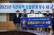 코리아타임뉴스 전남취재본부 | 순천시는 2025년 전라남도 축산시책 종합평가에서 최우수상을 수상했다고 23일 밝혔다. 시는 가축분뇨의 적정 처리와 악취 저감, 축산 환경 개선을 중심으로 한 축산 시책을 시민과 함께 추진해 왔으며, 이러한 노력이 이번 평가에서 최우수상 수상으로 이어졌다. 특히 축산단체와 지역 주민이 함께 만들어 낸 성과를 지역사회와 나누기 위해 시상금 일부를 조곡동 취약계층 나눔 활동으로 실천했다. 조곡동 취약계층 10가구를 대상으로 따뜻한 겨울 나기를 돕기 위한 전기매트를 구입해 전달했다. 이번 나눔은 축산 정책 추진 성과를 지역사회와 공유하고, 상생의 가치를 실천하기 위해 마련됐다. 시 관계자는 “축산시책 평가 최우수상 수상은 현장 농가와 시민 모두의 협력으로 이뤄진 결과”라며, “앞으로도 환경과 주민, 농가가 함께 상생하는 축산 정책과 더불어 지역사회 나눔을 지속적으로 실천해 나가겠다”고 말했다.