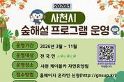 코리아타임뉴스 경남취재본부 | 사천시는 관내 유아숲체험원 5개소(수양공원, 초전공원, 망산공원, 월성공원, 자연휴양림)와 사천 케이블카 자연휴양림에서 운영하는 2026년 산림교육(유아숲·숲해설) 프로그램 참여자를 모집한다고 22일 밝혔다. 이번 프로그램은 4월 1일부터 11월 22일까지 운영되며, 사천시는 2025년 월성공원 유아숲체험원을 신규 조성함에 따라 올해 총 5개소의 유아숲체험원에서 다양한 유아숲체험 프로그램을 운영할 계획이다. 또한 사천 케이블카 자연휴양림에서는 올해 처음으로 숲해설 프로그램을 운영해 휴양림 방문객들에게 숲의 생태와 자연환경에 대한 이해를 높이는 기회를 제공할 예정이다. 프로그램은 유아숲지도사 2명과 숲해설가 1명이 진행하며, 유아숲체험원에서는 어린이집·유치원 유아를 대상으로, 사천 케이블카 자연휴양림에서는 시민과 방문객을 대상으로 체험형 산림교육을 실시한다. 프로그램 신청은 3월 23일부터 경남숲교육협회 홈페이지에서 가능하며, 자세한 사항은 경남숲교육협회 사무국으로 문의하면 된다. 시 관계자는 “관내의 유아들과 시민들이 숲에서 자연을 체험하며 건강하고 즐거운