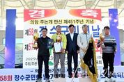 코리아타임뉴스 김태훈 기자 | 장수군은 지난 23일 장수종합경기장에서 개최된 의암주논개 탄신 제451주년 기념 제58회 장수군민의 날 기념식·제57회 장수군민 체육대회를 성공리에 마무리했다. 장수군민의 날 기념식과 장수군민 체육대회는 우리 군의 대표적인 역사 인물인 의암 주논개의 정신을 되새기기 위해 주논개 탄신일인 음력 9월 3일에 맞춰 해마다 개최된다. 이날 행사는 최훈식 군수를 비롯해 최한주 장수군의회 의장과 의원, 관내 기관·사회단체장, 지역주민, 선수단 등 1,000여 명이 참석하여 그 의미를 더했다. 기념식은 식전공연을 시작으로 △선수단 입장식 △국민의례 △군민헌장 낭독 △시상(군정발전유공자 표창, 장수군 명예군민증 수여, 장수군민의 장) △기념사 및 축사 △논개상 추대자 소개 순으로 진행됐다. 수상자는 지역의 명예를 드높이고 지역 발전에 앞장서 온 정연길(이티바이오텍 대표), 이수민(NH농협 장수군출장소장) 씨에 대한 군정발전유공 시상이 이뤄졌으며 김준오 NH농협 전 장수군지부장은 장수군 명예군민증을 수여 받았다. 또한 제43회 장수군민의 장 수상자인 문화체육장 오재영(남·