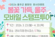 코리아타임뉴스 이아름 기자 | 울산 울주군이 봄을 맞아 오는 23일부터 다음달 30일까지 한시 관광이벤트를 진행한다고 20일 밝혔다. 이번 한시 이벤트는 다양한 연계 이벤트로 울주군 방문 관광객의 참여도와 만족도를 높이고, 체류시간과 지역소비를 확대하기 위해 마련됐다. 올해 새롭게 리뉴얼된 K스탬프투어 모바일 앱을 이용한 ‘봄꽃 가득, 울주’ 이벤트와 ‘울주와봄’ SNS 여행후기 인증 이벤트 등으로 구성됐다. ‘봄꽃 가득, 울주’ 이벤트는 울주군 내 지정 봄꽃 명소 10개소 중 8개소 이상을 방문해 스탬프를 획득한 뒤 선물을 신청하면 된다. 주요 코스는 울주군 벚꽃 명소인 △작천정 벚꽃길 △서생포왜성 △두서면 차리마을 벚꽃길 △회야강변 벚꽃길 등이다. 울주군은 이벤트 참여자 중 추첨을 거쳐 총 70명을 선정해 울주특산품을 제공한다. ‘울주와봄’ SNS 여행후기 인증 이벤트는 ‘봄꽃 가득, 울주’ 이벤트 코스 중 1개소의 사진과 울주군 숙박시설, 식당, 카페 중 1개소 영수증을 첨부해 개인 SNS(인스타그램)에 게시하면 된다. 여행후기 작성자 중 70명을 추첨해