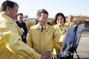 코리아타임뉴스 이아름 기자 | 28일 안성에서 19번째 민생경제 현장투어에 나선 김동연 경기도지사가 경기도 최남단 안성의 거점소독시설을 찾아 초동 방역 상황을 긴급 점검했다. 이번 점검은 지난 25일 충남 당진에서 발생한 아프리카돼지열병에 대한 선제적 방역 조치의 하나로 마련됐다. 김 지사는 현장에서 터널식 소독조에서 진행되는 가축 방역 과정을 지켜본 후 관계자들을 격려하고 겨울철 동물방역에 최선을 다해줄 것을 당부했다. 김 지사는 “조류인플루엔자와 아프리카돼지열병이 계속 전파 중이어서 걱정이다. 경기도는 빠른 대응, 강력한 방역, 신속한 지원의 3대 원칙으로 동물방역에 대처하겠다”며 “축산농가 보호와 축산업 발전을 위해 최선을 다하겠다. 축산농가 종사자 여러분들도 방역과 예방에 협조를 부탁드린다”고 강조했다. 돼지 33만 두를 사육하는 안성(도내 2위, 전국 4위)은 평택·화성과 근접한 돼지 사육 중심지다. 경기도는 방역대 설정, 이동 제한 등 광범위한 방역 조치를 시행하고 있다. 현장에서 김보라 안성시장, 윤종군 국회의원과 즉석 스탠딩 간담회 가져 소독시설 점검을 마친
