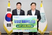 코리아타임뉴스 전남취재본부 | 담양군은 18일 군청에서 NH농협 제휴카드 적립기금 전달식을 개최했다. 이번에 전달된 적립기금은 약 4,700여만 원으로, 담양군과 NH농협 간 제휴카드 협약에 따라 조성됐다. 이 기금은 카드 이용 실적에 따라 NH농협에서 조성해 매년 담양군에 전달하는 것으로, 군이 지난 한 해 공무 수행에 사용한 보조금 전용카드와 소속 공무원의 복지카드, 각종 단체에서 발급한 보조금 카드 이용 금액의 0.1~1.0%가 포인트로 적립돼 마련됐다. 군은 전달받은 기금을 세입 처리해 지역사회 발전과 군민 복리 증진을 위한 재원으로 활용할 계획이다. 정철원 군수는 “NH농협과의 협력을 통해 조성된 소중한 기금인 만큼 군민 복리 증진과 지역 발전을 위해 의미 있게 사용하겠다”며 “앞으로도 NH농협 담양군지부가 지역사회와 상생하며 함께 발전해 나가길 기대한다”라고 말했다.