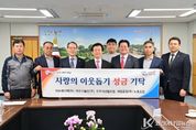 코리아타임뉴스 경남취재본부 | 진주시복지재단은 6일 진주시청 기업인의 방에서 지역사회 기업·기관·단체의 어려운 이웃돕기 성금 기탁식을 가졌다. 이번 기탁식에서 이누메디텍㈜(대표 이인우)에서 성금 2,000만 원, 이수기술단㈜(대표 황국주)에서 성금 2,000만 원, 진주시산림조합(조합장 정덕교)에서 성금 1,000만 원, 세일공업㈜노동조합(위원장 조경옥)에서 성금 200만 원을 지역사회 어려운 이웃을 돕기 위해 기탁했다. 이날 기탁식에 참석한 기업·기관·단체 관계자는 “지역사회 소외된 이웃에게 조금이나마 도움이 되길 바라며, 앞으로도 나눔 활동에 적극 동참하겠다”고 밝혔다. 진주시 관계자는 “어려운 시기에 따뜻한 나눔을 실천해 주셔서 감사드린다”며 “기탁해 주신 성금은 기탁자의 뜻에 따라 소외된 이웃을 위해 소중히 사용하겠다”고 말했다. 한편, 진주시복지재단은 지역 내 기부 자원 확충과 나눔문화 확산을 통해 복지사각지대 해소에 힘쓰고 있으며,‘시민 모두의 보다 나은 삶 실현’을 목표로 취약계층 발굴 및 지원에 지속적인 노력을 기울이고 있다.