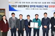 코리아타임뉴스 부산취재본부 | 기장군은 최근 금샘고등학교(교장 오상흔)와 ‘협약형 특성화고등학교 육성을 위한 업무협약’을 체결했다고 19일 밝혔다. 이번 협약은 전력반도체 협약형 특성화고등학교 선정을 위해 준비 중인 금샘고등학교를 지원하고, 기장군의 미래 먹거리인 전력반도체 특화단지에 필요한 맞춤형 인재를 양성하기 위해 협력 체계를 구축하고자 마련됐다. 이날 협약식에는 정종복 기장군수와 오상흔 금샘고등학교 교장을 비롯해 금샘고등학교 학부모회, 기장군 소재 기업인 ㈜효성전기와 ㈜SCV 관계자 등이 참석했다. 기장군과 금샘고등학교는 상호 신뢰를 바탕으로 2026년 3월부터 5년간 지역 기반 산업 인재 육성을 위해 실질적인 협력을 추진하기로 뜻을 모았다. 주요 협약 내용은 ▲지역 기반 산업 인재 육성을 위한 지자체-학교 간 거버넌스 구축 ▲교육 비전 달성을 위한 행정적 지원 및 대외 홍보 ▲특성화 프로그램 운영을 위한 행정·재정적 지원 검토 등이다. 정종복 기장군수는 “금샘고등학교 재학생 중 기장군 거주 학생 비율이 약 22%에 달할 만큼 우리 군과 밀접한 관계가 있다”라며, “우리 지역의
