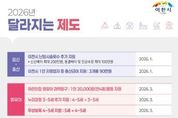 코리아타임뉴스 기동취재팀 | 이천시가 2026년 새해를 맞아 시민 생활과 밀접한 달라지는 제도를 발표했다. 시책뿐만 아니라 중앙정부와 경기도 정책 중 시민들이 일상에서 변화를 체감할 수 있는 제도를 중심으로 ▲일반행정(4건) ▲복지·보건·여성·보육·노동(54건) ▲산업·경제, 농림·축산·산림(34건) ▲환경·자원, 도시·교통·건설(13건) ▲재난안전, 문화·체육·관광(11건) 5개 분야로 구분해 알기 쉽게 정리했다. 우선 행정 분야에서는 이천시 전 읍면동 당직 근무가 폐지됨에 따라 읍면동 행정복지센터 청사 개방 시간이 변경된다. 평일 개방 시간은 오전 9시부터 오후 6시까지이며, 토요일과 공휴일은 개방하지 않는다. 근무 시간 외 민원전화는 시청 당직실로 전환된다. 또한 개인통관보유부호 유효기간이 도입되어 발급 후 매년 갱신해야 하며, 오는 3월부터는 여권 발급 수수료가 2천 원 인상된다. 복지·보육 분야에서는 시민의 생활 안정을 높이고 돌봄 부담을 완화하기 위한 제도 개선이 대폭 확대된다. 기준 중위소득이 6.51% 인상되면서 최저생활 보장이 강화된다. 결식아동 급식지원 단가가 기존 9,500원에서 10,000