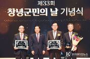 코리아타임뉴스 경남취재본부 | 창녕군은 3일 ‘제33회 군민의 날 기념식’을 창녕문화예술회관 대공연장에서 개최했다. 이날 기념식은 군민 400여 명이 참석한 가운데 팝페라그룹 ‘세레나데’의 축하공연으로 막을 올렸다. 이어서 제35회 창녕군민대상 및 제18회 창녕명예군민 시상을 통해 지역사회 발전에 기여한 인물들의 공로를 기리는 뜻깊은 시간을 가졌다. 창녕군민대상은 3개 부문으로 봉사부문에 성기학 ㈜영원무역 대표이사 회장, 교육·문화부문에 김영일 前 부산경남방송 초대 방송 본부장, 체육부문에 윤상고 (사)비연합기도협회 총재가 각각 수상의 영예를 안았다. 성기학 ㈜영원무역 대표이사 회장은 경화회관 건립과 경화회 활동지원을 통한 지역문화 보존과 각종 재난 및 사고 발생 시 아낌없는 성금 기탁, 그리고 어려운 이웃을 위해 다년간 의류 기부 활동을 한 공으로 봉사 부문을 수상했다. 김영일 前 부산경남방송 초대 방송 본부장은 언론계 재직 중 남다른 애향심으로 군정 홍보와 향토 발전에 공헌했으며, 다양한 방송 매체를 통해 창녕군정 활동을 적극적으로 알린 공로로 교육·문화부문을 수상했다. &nb
