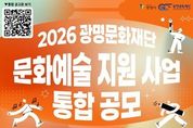 코리아타임뉴스 경기취재본부 | 광명문화재단은 지역 예술인(단체)의 안정적인 창작 환경을 조성하고 참여 기회를 확대·보장하기 위해 ‘2026년 문화예술지원 공모’ 6개 부문을 통합 시행한다고 밝혔다. 이번 통합 공모는 그동안 개별적으로 운영하던 지원 사업을 하나로 묶어 추진하는 것이 특징이다. 이를 통해 지원 체계의 효율성을 높이고 예술인의 접근성을 강화하는 한편, 지역 예술인(단체)의 실질적인 참여 기반을 한층 확대할 계획이다. 공모는 ▲청년예술인 지원 사업(청년예술인 또는 그룹·단체) ▲모든예술31 '광명_곳곳' 지원 사업(예술인·단체, 경기예술활동지원) ▲‘광명청년예술공장’ 2기 입주 작가(청년예술가) ▲‘예술공간 광명시작’ 공간 활용 사업 '광명시작에서 예술하기'(신진예술인) ▲'1인 1기' 시민 문화예술 활동 지원 사업(동아리·시민·예술 강사) ▲민간 문화공간 발굴 활성화 사업 '생기발랄 문화의집' 등 총 6개 부문으로 진행된다. 송은영 대표이사는 “이번 통합 공모는 지역 예술인(단체)의 창작 기반을 강화하고, 지속 가능한 문화예술 성장을 이끌기 위한 것”이라며 “다양한 문화 주체들의 적극적인 참여를 기