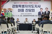 코리아타임뉴스 이아름 기자 | 김진태 강원특별자치도지사는 '강원특별법' 군사특례를 활용한 첫 권한 행사로 지난 3월 군사규제 개선 성과를 거둔 철원군을 11월 14일 방문해 도지사 ‘마을진담회’(진솔한 +간담회)의 네 번째 자리를 마련했다. 이번 진담회는 주민과의 소통을 강화하고, 현장의 의견을 보다 폭넓게 듣기 위해 철원군을 김화·갈말권역과 철원·동송권역의 두 개 권역으로 나누어 진행했다. 이날 행사에는 김진태 지사를 비롯해, 한기호 국회의원(춘천, 철원, 화천, 양구을), 이현종 철원군수, 김정수·엄기호 도의원, 이장, 주민자치위원, 노인회 등 각계각층의 주민 300여 명이 참석해 뜨거운 관심 속에 진담회가 시작됐다. 이현종 철원군수는 “이번 방문은 지사님께서 철원을 아끼고 주민의 애로사항을 듣고 신속히 반영하고자 하는 마음의 표현”이라고 말했다. 이어 “철원군은 군사규제 100만평 완화, 농업진흥지역 3만 4천 평 해제 등 규제 개선의 가시적 성과를 이뤄냈다”고 설명했다. 또한, “수돗물 하수처리시설 개선을 위해 도비 약 60~70억 원을 지원받아 추진 중이며, 신철원과 와수 지역은 그동안