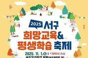코리아타임뉴스 이아름 기자 | 부산 서구는 오는 11월 1일 송도오션파크에서 서부교육지원청과 공동으로 '2025년 서구 희망교육 & 평생학습 축제'를 개최한다. 이번 축제는 ‘아이부터 어른까지, 함께 배우고 나누는 즐거운 하루’를 주제로 오전 11시부터 오후 4시까지 다채로운 프로그램이 펼쳐질 예정이다. 대신여자중학교의 신나는 밴드 공연을 시작으로, 관내 7개 학교, 10개 학생 동아리, 12개 평생학습 동아리가 참여해 열띤 무대를 선보인다. 또한 38개의 특색 있는 체험부스, 온가족 플리마켓, 희망교육 & 평생학습 작품 전시회 등 풍성한 볼거리와 즐길거리로 가득할 예정이다. 특히 오는 11월 22일 개관 예정인 서구아미드림도서관 홍보‧체험부스도 운영되어 구민들이 서구의 첫 구립도서관을 미리 만나볼 수 있다. 공한수 서구청장은 “희망교육과 평생학습이 어우러지는 이번 축제를 통해 지역 주민들이 함께 배우고 소통하며 성장하는 계기가 되길 바란다”고 말했다.