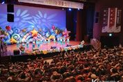 코리아타임뉴스 경기취재본부 | ‘제21회 어르신과 함께하는 어린이 예술제’가 10월 28일 오후 2시~4시 성남시청 1층 온누리에서 성남시 국공립어린이집연합회 주최로 열렸다. 성남시가 후원한 이날 행사는 600여 명이 참석한 가운데 ‘아이도 어르신도 행복한 성남, 0100 사랑 나눔 꿈을 잇다’를 주제로 진행됐다. “0세부터 100세까지 세대 간 소통한다”는 의미에서 성남시 국공립어린이집 원아들은 재롱잔치를 벌이고, 어르신들은 노인종합복지관에서 갈고닦은 공연 실력을 뽐내는 예술제가 펼쳐졌다. 무대에 오른 3개 팀의 국공립어린이집 원아들은 사물놀이(21명), 다도 시연(8명), 빙글빙글 댄스(24명) 공연을 했다. 3개 팀의 어르신들은 전통 춤(9명), 하와이 훌라춤(11명), 우쿨렐레 공연(10명)을 선보였다. 세대 간 함께 즐기는 소통의 무대가 마련돼 참석자들의 호응 속 박수갈채가 이어졌다. 성남시립국악단의 타악기 퍼포먼스 ‘무태평’, 초청 가수 박일준의 ‘놀아봅시다’, 도은혜 전자바이올린 연주가의 트로트 연주 등 축하공연도 마련돼 예술제의 분위기를 달궜다.