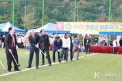 코리아타임뉴스 경남취재본부 | 의령군 그라운드골프협회(회장 하만용)는 13일 오전 10시 30분, 의령읍 서동 제2다목적구장에서 제4회 의령군협회장기 그라운드골프대회를 개최했다. 이번 대회에는 오태완 군수, 김규찬 의장, 김채용 도 그라운드회장 등 기관·사회단체장과 선수 등 300여 명이 참석했으며, 12개 클럽이 참가한 단체전과 개인전에서 그동안 갈고닦은 기량을 겨뤘다. 단체전에서는 가례면이 우승을 차지했으며, 대의면과 부림면이 각각 2위와 3위를 차지했다. 개인전 우승은 의령읍클럽 정석자 선수가 차지했다. 그라운드골프는 지면 위의 공을 골프채로 쳐서 홀에 넣는 스포츠로, 거리나 홀 수를 자유롭게 설정할 수 있어 남녀노소 누구나 쉽게 즐길 수 있다. 오태완 군수는 인사말을 통해 “그동안의 염원이었던 그라운드골프 전용구장에서 대회를 개최하게 되어 매우 기쁘다”며, “이번 대회가 동호인 간 친목과 우의를 다지는 뜻깊은 시간이 되길 바란다”고 말했다.