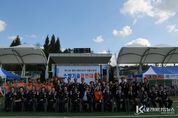 코리아타임뉴스 김태훈 기자 | 천안서북소방서는 11월 1일 천안 북부스포츠센터 축구장에서 ‘제13회 천안서북소방서 의용소방대 기술경연대회’를 개최했다. 이번 대회는 의용소방대원들이 평소 연마한 소방기술을 발휘하고, 대원 간 사기진작과 조직 활성화를 도모하기 위해 마련됐다. 이날 행사는 국회의원 및 도·시의원, 소방공무원과 의용소방대원 등 350여 명이 참석한 가운데 진행됐으며, 1부에서는 소방활동 유공자 표창 수여와 기술경연을 실시했으며, 2부에서는 장기자랑 등 대원 상호 간 친목 도모를 위한 화합의 시간을 가졌다. 기술경연은 ▲소방호스 전개·회수(남·여) ▲화재진압 4인조법(남·여) ▲단체줄넘기(혼성) 종목으로 구성되어, 대원들은 실전과 같은 긴장감 속에서 갈고닦은 기량을 유감없이 발휘했다. 김종욱 소방서장은 “이번 기술경연대회는 의용소방대원들의 현장 대응능력과 단결력을 높이는 뜻깊은 시간이 됐다”며 “앞으로도 시민의 생명과 안전을 지키는 든든한 동반자로서 함께 성장해 나가길 바란다”고 말했다.