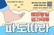 코리아타임뉴스 김택호 기자 | 울산 동구가 오는 10월 26일 오전 9시부터 11시 30분까지 일산해수욕장 상설무대 일원에서 ‘2025 해파랑길 걷기 축제 – 파도 따라 맨발 걷기’를 개최한다. 이번 행사는 문화체육관광부와 한국관광공사가 주관하는 ‘코리아둘레길 쉼터 및 지역 관광 프로그램 연계 공모사업’의 하나로 추진되는 것으로, 시민과 관광객이 함께 참여하는 가을 걷기 축제이다. ‘파도 따라 맨발 걷기’는 해파랑길 8코스 구간 중 일산해수욕장에서 대왕암공원까지 약 2km 구간을 따라 맨발로 걷는 체험형 행사로, 파도 소리와 모래의 촉감을 직접 느끼며 자연과 교감할 수 있도록 기획됐다. 특히 해파랑길 8코스는 한국관광공사가 선정한 ‘자연환경이 아름다운 첫 번째 추천 코스’로, 일산해수욕장의 백사장과 대왕암 송림이 어우러진 동구의 대표적인 명품 길로 꼽힌다. 행사 당일에는 공연, 체험 부스, 마켓 등 다양한 부대행사도 함께 진행되며, 참가자에게는 타포린 가방, 핀 버튼, 미니 생수, 간식 세트 등 기념품이 제공된다. 참가비는 1인당 5,000원이며, 사전 접수 80%, 현장 접수 20% 비율로 총 5