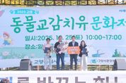 코리아타임뉴스 문화팀 | 고양특례시는 지난 25일 일산 문화광장에서 ‘2025 고양 동물교감치유 문화제’를 성황리에 개최했다고 밝혔다. 이번 행사는 10월 4일 ‘동물보호의 날’을 기념해 사람과 동물이 함께 행복한 도시문화를 확산하기 위해 마련됐다. 이날 기념식에서는 반려동물 복지문화 확산과 공공 반려동물 시설 운영에 기여한 동물단체에 대한 시장 감사장 수여식이 함께 진행됐다. 권지선 고양시농업기술센터 소장은 기념사를 통해 “10월 4일은 생명존중의 가치를 되새기며 모든 동물이 보호받아야 함을 기억하는 뜻깊은 날”이라며, “오늘 ‘2025 고양 동물교감치유 문화제’를 통해 사람과 동물이 서로의 마음을 이해하고 치유받는 따뜻한 시간을 보내시길 바란다. 고양시는 앞으로도 반려동물 복지환경을 지속적으로 개선하고, 시민과 반려동물이 함께 행복한 도시를 만들어가기 위해 최선을 다하겠다”라고 밝혔다. 이번 문화제는 고양 펫스타 패션쇼, 미용 교실, 펫 마사지 시연, 장애물 달리기(어질리티) 시범 및 체험, 달리기 게임 등 다채로운 프로그램과 함께 고양시 농산물 판매, 펫로스 증후군 상담, 동물 감정카드 체험,