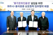 코리아타임뉴스 윤광희 기자 | 파주시가 율곡 이이 선생의 학문과 철학을 체계적으로 계승하기 위해 추진 중인 ‘율곡문화진흥원’설립을 위해 지난 6일 율곡 선생의 후손인 덕수 이씨 종중과 업무협약을 체결했다. 파주시장 접견실에서 치러진 이날 협약식 현장에는 김경일 파주시장을 비롯한 파주시 관계자들과 덕수 이씨 대종회, 덕수 이씨 찬성공파 종회를 대표하는 인사와 율곡 선생의 종손이 참석해 율곡문화진흥원 설립 추진을 위한 상호 간 협력을 다짐했다. 협약의 주요 내용으로는 율곡문화진흥원 건립부지 확보 상호협조, 율곡문화진흥원 설립 기본계획 및 추진방향에 대한 협력, 율곡이이 선생 관련 종중 보유 역사·문화자료 제공, 사업 추진에 필요한 협력체계 구축 등이다. 김경일 파주시장은 “이번 협약은 율곡 선생의 정신을 현대적으로 계승하고, 파주시를 대표하는 역사·문화 자산을 체계적으로 발전시키는 중요한 출발점”이라고 강조하며 “율곡문화진흥원이 학술과 교육, 문화가 융합된 거점시설로 자리매김할 수 있도록 율곡 종중과의 협력에 최선을 다하겠다”라고 말했다. 율곡 종중 관계자 역시 “율곡 선생의 사상과 업적이 올바르게 계