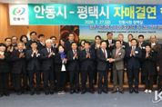 코리아타임뉴스 윤광희 기자 | 평택시의회는 2월 27일, 안동시청에서 평택시-안동시 자매결연 협약식에 참석해 양 도시의 상생 발전을 다짐했다. 이날 협약식에는 평택시의회 이종원 의회운영위원장, 김영주 기획행정위원장을 비롯하여 정장선 평택시장 등 평택시 대표단이 참석하고 김경도 안동시의회 의장, 권기창 안동시장 등 안동시 대표단이 함께하며 상호 협력 의지를 다졌다. 협약식은 ▲협약서 서명 및 교환 ▲기념품 교환 ▲지역 농특산품 판로 개척 및 로컬푸드 교류 협력 방안 등이 논의됐다. 이어 안동 하회마을을 방문해 문화·관광 교류 확대에 대해서도 의견을 나눴다. 평택시의회 이종원 의회운영위원장은 “평택은 서해안의 관문이자 국제교류의 중심 도시이고, 안동은 깊은 전통과 유교 문화가 뿌리내린 선비문화의 본고장”이라며 “서로 다른 강점과 매력을 지닌 두 도시가 손을 맞잡는 의미는 매우 크다”라고 말했다. 이어 “양 도시의 상생과 우정이 시민이 체감할 수 있는 실질적인 성과로 이뤄지도록 평택시의회도 적극 지원하겠다”라고 밝혔다. 안동시의회 김경도 의장은 “평택시와의 자매결연은 전통과 산업이 만나 새로운 상생 모델