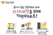 코리아타임뉴스 김태훈 기자 | 경상남도 소방본부는 최근 주거시설 내부에서 전동킥보드를 현관에서 충전하던 중 화재가 발생했다면서, 도민들에게 전동킥보드 사용 및 충전 시 각별한 주의를 당부했다. 소방본부에 따르면 11월 19일 오후 11시 33분경 진주시 유곡동의 한 다가구주택 2층 세대 현관에서 충전 중이던 전동킥보드 배터리에서 화재가 발생했다. 이로 인해 거주자가 실내에 고립되어 거실 창문을 통해 대피하는 과정에서 연기를 흡입하고 손가락에 화상을 입는 등 피해를 입었다. 2022년 9월에도 밀양시 내이동의 아파트에서 거주자가 잠든 사이 현관에서 충전 중이던 전동킥보드 배터리에서 불이 나는 사고가 있었다. 당시에도 현관을 통한 피난이 불가능해 거주자가 세대 내 대피실로 피신하는 등 위험한 상황이 발생했다. 이처럼 현관에서 충전하던 중 화재가 발생하면 유일한 탈출로인 현관이 막혀 거주자가 실내에 고립될 수 있으며, 자칫 소중한 생명을 잃는 인명피해로 이어질 수 있다. 전동킥보드를 안전하게 사용하기 위해서는 ▲ 안전장치가 장착된 인증제품(KC) 사용 ▲ 안전한 장소에서 충전 ▲ 현관문·비상구 등 대피로