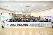 코리아타임뉴스 기동취재팀 | 양주시가 지난 12일 옥정호수도서관 3층 예술극장에서 양주시니어클럽 주관으로 ‘2026년 노인일자리 및 사회활동지원사업 발대식’을 개최했다. 이날 행사에는 노인일자리 참여 어르신과 관계자 등 180여 명이 참석해 성황을 이뤘다. 행사는 공립리첼아이어린이집 어린이 사물놀이단의 식전공연을 시작으로 ▲후원금 전달식 ▲관장 인사말 ▲내빈 축사 ▲개회 선포 ▲선언문 낭독 ▲피켓 행진 ▲단체사진 촬영 순으로 진행됐다. 또한 양주시니어클럽 공동체사업단 카페 매장의 수익금 일부를 모아 조성한 후원금 200만 원을 양주시사회복지협의회에 전달하는 행사도 함께 열렸다. 전달된 후원금은 관내 복지사각지대 대상 긴급지원에 사용될 예정이다. 서의동 양주시니어클럽 관장은 “참여 어르신들께 자긍심과 안전한 근무 환경을 제공하는 데 최선을 다하겠다”며, “특히 공동체사업단 카페 매장의 수익금을 지역사회 환원 사업에 활용해 어르신들의 사회참여가 실질적인 성과로 이어지도록 꾸준히 노력하겠다”고 말했다. 양주시 관계자는 “노인일자리사업은 어르신들의 활기찬 노후를 보장하고 지역사회 발전을 이끄는 주요 사업”