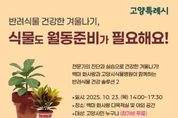 코리아타임뉴스 문화팀 | 고양특례시는 반려식물의 건강한 겨울나기를 위한 맞춤 해법을 제공하는 ‘그린케어, 겨울 대비 반려식물 돌보기 행사’를 오는 10월 23일 오후 2시부터 5시 30분까지 백마 화사랑에서 개최한다고 밝혔다. 먼저 백마 화사랑 야외 공간에서는 고양시식물병원 전문가가 상주해 시민이 직접 가져온 반려식물에 대해 1:1 현장 진단을 제공하고, 병해충, 과습 등 식물의 상태에 따라 분갈이, 영양제 처방 및 맞춤형 월동 관리법을 안내한다. 별도 신청 없이 당일 현장 접수로 참여 가능하다. 실내에서는 ‘반려식물 동절기 핵심 관리법’을 주제로 체험형 특강이 진행된다. 겨울철 생육 관리 요령, 휴면기 대비 가지치기 및 분갈이 실습 등 내년 봄의 성장을 위한 전문적인 지식을 습득할 수 있다. 특강은 백마 화사랑 누리집에서 선착순 12명까지 신청할 수 있다. 시 관계자는 "겨울은 식물이 가장 취약해지는 시기인 만큼, 이번 행사를 통해 전문가의 과학적인 진단과 맞춤형 솔루션으로 반려식물과 더욱 건강하고 풍요롭게 겨울을 나시길 바란다”고 전했다. 행사에 대한 자세한 내용과 특강 신청은 백마 화사랑 누리