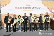 코리아타임뉴스 기동취재팀 | 양주시가 지난 11일 양주시농업기술센터에서 '제30회 양주시 농업인의 날 기념식'을 개최했다. 농업인을 격려하고 농업ᐧ농촌의 공약적 가치와 비전을 공유하기 위해 마련된 이번 행사에는 강수현 양주시장을 비롯한 관내 주요 인사 및 농업관련 단체장, 농업인 등 약 500여명이 참석하여 농업의 가치와 농업인의 노고를 함께 기렸다. 강수현 시장은 축사에서 “한 해 동안 수확을 위해 노력을 아끼지 않은 농업인들의 영농활동에 대한 노고를 위로하고 양주시 농업 발전에 헌신 봉사하는 관내 농업인들에게 감사드린다”며, “양주시에서 생산된 먹거리는 지역의 정체성을 담은 소중한 자산으로 시는 지역 먹거리가 더욱 사랑받고 발전할 수 있도록 다각적으로 지원하겠다”고 말했다. 이날 기념식에서는 농업발전에 이바지한 공로로 양주시장상, 국회의원상, 양주시의회의장상 등 7분야 49명이 표창을 받았다. 한편 “농업인의 날”은 매년 11월 11일로 농업과 생명의 근간인 흙 토(土)자를 십(十)과 일(一)로 나눌 수 있기 때문에 1년 중 11이 두 번 겹치는 11월 11일을 농업인의 날로 정했다고 한다.