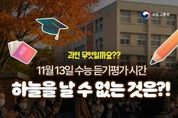 코리아타임뉴스 윤광희 기자 | 하늘을 날 수 없는 것들은? ■ 전면 통제대상 · 모든 항공기 이륙 금지 (비행 중 항공기 → 3km 이상 상공에서 대기) · 헬기 · 경량항공기 그리고 초경량 비행장치(드론 포함) 모두 STOP! * 예외: 비상·긴급 항공기 영어 듣기평가에 방해가 되는 '항공기소음 최소화' ■ 언제 통제되나요? 11월 13일(목) 13:05~13:40(총 35분) ※ 듣기평가 전·후 5분 포함 수험생에게 조용한 하늘을! 국민 여러분의 협조를 부탁드립니다.