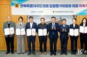 코리아타임뉴스 김태훈 기자 | 전북특별자치도의회는 14일 의장실에서 전북특별자치도의회 입법평가위원회 위원 위촉식을 개최했다. 민간위원 임기 만료에 따라 진행된 이날 위촉식에서는 교수와 변호사, 행정 전문가 등 총 8명이 위원으로 위촉됐다. 이들의 위촉 기간은 오는 2027년 11월 14일까지 2년간이다. 문승우 의장은 이날 위촉식에서 “조례가 도민의 삶에 실질적인 변화를 불러오려면 점검과 개선이 필요하다”며 “입법평가위원회가 전문성과 객관성을 바탕으로 도의회의 입법 역량을 높이는 데 중추적인 역할을 해주길 바란다”고 당부했다. 입법평가위원회는 ‘전북특별자치도 조례 입법평가 조례’에 따라 조례의 운영 실태와 입법 목적 달성 여부를 점검하고, 입법 평가 제도 개선 및 조례 정비 방향 등을 심의하는 역할을 하고 있다. 현재 위원회는 도의원 5명과 민간위원 8명 등 총 13명으로 구성되어 있으며, 위원장은 의회운영위원장이 당연직을 맡고 있다. 특히 내년도에는 입법평가를 외부 용역이 아닌 자체평가 방식으로 전환해 추진할 계획이며, 입법지원팀이 직접 평가를 수행하고 입법평가위원회의 자문과 입법·법률고문단의 검