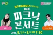 코리아타임뉴스 충북취재본부 | 청주시는 청주시립예술단과 함께하는 제4회 ‘피크닉 콘서트’가 오는 5월 1일부터 3일까지 3일간 매일 오후 7시 30분 문화제조창 잔디광장에서 열린다고 밝혔다. 청주의 대표 문화브랜드 축제로 자리매김한 피크닉 콘서트는 올해로 4회째를 맞았다. 올해 역시 장르를 넘나드는 다양한 예술이 어우러진 프로그램으로 구성돼 가족, 친구, 연인 등 누구나 잔디광장에 앉아 여유롭고 특별한 봄밤을 즐길 수 있도록 준비했다. 첫날인 1일 ‘청주를 깨우다’ 공연에는 청주시립국악단과 청주시립무용단, 가수 솔지, 모듬북 연주자 장지훈, 전통연희단 난장앤판이 출연한다. 공연은 청주농악보존회의 여는 무대로 시작되며, 청주시립무용단의 ‘연꽃부채’와 ‘풍류장고&설장고’가 무대 분위기를 끌어올린다. 이어 장지훈의 모듬북 연주 ‘Heart of Storm’, 자연의 소리와 국악 장단을 접목한 ‘음유화풍’, 청주시립무용단의 창작무용 ‘꽃과 나비와 바람’이 펼쳐진다. 이후 가수 솔지가 무대에 올라 특유의 파워풀한 가창력으로 공연의 열기를 더하고, 전통연희단 난장앤판의 설장구협주곡 ‘소나기’가 첫날 무대의 대