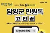 코리아타임뉴스 전남취재본부 | 담양군이 군민과의 소통을 강화하고 생활 속 불편과 안전 문제를 신속하게 해결하기 위해 카카오톡 채널 ‘담양군 민원톡’ 활성화에 나섰다. ‘담양군 민원톡’은 2023년부터 운영 중인 카카오톡 기반 생활민원 소통 창구로, 도로 파손, 가로등 고장, 불법 폐기물 등 일상에서 발생하는 각종 생활민원을 간편하게 접수할 수 있으며, 단순 질의나 간단한 문의도 함께 처리하고 있다. 카카오톡 채팅창에서 ‘담양군 민원톡’을 검색해 채널을 추가하면 누구나 별도의 절차 없이 이용할 수 있으며, 사진과 함께 현장 상황을 바로 전달할 수 있어 민원 접수의 편의성과 신속성이 크게 개선된 것이 특징이다. 접수된 민원은 총괄부서인 민원과에서 확인 후 소관부서와 협력해 처리하며, 처리 결과는 민원인에게 신속하게 안내해 행정의 투명성과 신뢰도를 높이고 있다. 단순민원은 5일 이내, 복합민원은 국민신문고와 연계해 최대 7일 이내 처리 계획과 결과를 안내하고 있으며, 근무시간 외나 공휴일에 접수된 민원은 다음 근무일에 순차적으로 확인해 처리된다. 군 관계자는 “군민의 생활 속 작은 불편도 놓
