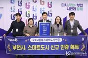 코리아타임뉴스 경기취재본부 | 부천시는 국토교통부가 주관한 ‘2025년 스마트도시 인증’ 공모에서 신규 인증을 획득해, 국토교통부 장관 명의의 인증서와 동판을 수여 받았다고 17일 밝혔다. ‘스마트도시 인증제’는 지자체의 스마트 역량과 도시 서비스 수준을 종합 진단해 우수성을 인증하는 제도로, 2021년부터 시행되고 있다. 시는 2021년 첫 스마트도시 인증을 시작으로, 2023년 재인증에 이어 이번 2025년 평가에서도 우수한 성적으로 인증을 획득해 흔들림 없는 스마트도시 경쟁력을 입증했다. 특히 단순한 인프라 구축을 넘어, 시민 생활과 밀접한 맞춤형 스마트 서비스를 제공한 점이 높은 평가를 받았다. 모바일 통합플랫폼 ‘부천in’은 대표적인 성과로 평가받았다. ‘부천in’은 전자시민증을 기반으로 공공시설 이용부터 무정차 주차 정산, 맞춤형 시정 홍보까지 다양한 기능을 하나로 통합해 시민들의 일상 속 편의성을 크게 높였다는 평가를 받았다. 이와 함께 ‘온마음 AI 안부콜’ 서비스는 취약계층에게 필요한 복지정보를 신속하게 전달해 복지 사각지대 해소에 기여한 점에서도 높은 평가를 받았다.