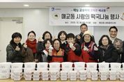 코리아타임뉴스 사회팀 | 수원시 팔달구 매교동 새마을부녀회는 지난 16일 연말을 맞아 매교동 행정복지센터 대회의실에서 관내 홀몸어르신 및 저소득층을 위한 ‘사랑의 떡국 나눔 행사’를 진행했다. 이날 새마을부녀회 회원들은 새해를 앞두고 따뜻한 마음을 담아 떡국 밀키트 등 음식을 정성껏 준비해 관내 홀몸어르신과 저소득층 50가구에 직접 전달하며 이웃사랑을 실천했다. 이미정 매교동 새마을부녀회장은 “정성껏 준비한 떡국이 추운 겨울을 보내는 이웃들에게 힘이 되길 바란다”며 “앞으로도 지역의 어려운 이웃들을 위한 나눔 활동을 꾸준히 이어가겠다”고 말했다. 이지효 매교동장은 “항상 지역사회를 위해 애써주시는 새마을부녀회 회원들께 감사드린다”며 “이웃들에게 전달된 따뜻한 마음이 겨울을 보내는 데 도움이 되길 바란다”고 전했다.