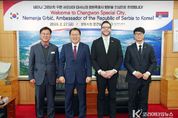 코리아타임뉴스 경남취재본부 | 창원특례시는 27일 오전 시청 접견실에서 장금용 창원시장 권한대행이 네마냐 그르비치(Nemanja GRBIĆ) 주한 세르비아 대사를 접견하고, 양국 지방정부 간 교류·협력 방안을 논의했다고 밝혔다. 이번 접견은 창원시와 세르비아 간 상호 이해를 증진하고 향후 실질적인 교류 의제를 발굴하기 위해 주한 세르비아 대사관의 요청으로 마련된 첫 공식 만남이다. 이날 네마냐 그르비치 대사는 창원의 우수한 기술력과 산업 기반에 깊은 관심을 표명했다. 특히 '세르비아가 추진 중인 친환경 에너지 정책 속에서 창원의 기술은 매우 중요한 역할을 할 수 있을 것'이라며 적극적인 협력 의지를 전했다. 이에 장금용 창원특례시장 권한대행은 "창원은 기계, 방산, 원전 등 대한민국 제조업을 견인하는 핵심 산업도시로, 세르비아와의 협력 잠재력이 매우 크다"고 강조했다. 이어서 “이번 방문이 창원과 세르비아 간의 우호 관계를 공고히 하고 미래지향적 파트너십을 구축하는 계기가 되길 바란다"며, “앞으로도 지속적인 소통을 통해 다양한 분야에서 협력 성과가 도출될 수 있도록 노력하겠다”고 밝혔다. 또한 창