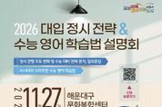 코리아타임뉴스 이아름 기자 | 해운대구는 오는 11월 27일 오후 6시 30분, 해운대구문화복합센터 대강당에서 ‘2026학년도 대입 정시 전략&수능영어 학습법 설명회’를 개최한다. 이번 설명회는 윤윤구 EBSi 입시 대표 강사(한양대부속고)가 강연자로 나서 2026학년도 수능 분석과 정시 전형의 주요 변화, 효과적인 지원 전략을 안내한다. 윤 강사는 교육부 정책 자문위원이자 수능 출제·검토위원으로 활동한 경험을 바탕으로, 수험생과 학부모에게 실질적인 입시 방향을 제시할 예정이다. 또한, 김효은 전 EBSi 영어 강사가 AI시대에 맞춘 스마트한 수능 영어 학습법을 소개해 수험생들의 학습 효율을 높이는 방법을 전한다. 이번 설명회는 해운대구청과 해운대구진로교육지원센터가 공동 주관하며, 11월 17일 오전 10시부터 해운대구청 홈페이지에서 선착순 210명 접수로 진행된다.