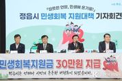 코리아타임뉴스 김태훈 기자 | 정읍시와 정읍시의회가 장기화된 경기 침체로 어려움을 겪는 시민들의 생활 안정을 위해 다시 한번 뜻을 모았다. 이학수 정읍시장과 박일 정읍시의회 의장은 15일 시청 대회의실에서 기자회견을 열고, 모든 시민에게 1인당 30만원의 ‘민생회복지원금’을 지급한다고 밝혔다. 이번 지원금 지급 결정은 고물가와 난방비 부담 등으로 인해 시민들이 체감하는 생활 위기가 한계에 다다랐다는 판단에 따른 것이다. 실제 지난 1일 한국은행 조사 결과에 따르면, 정부의 민생회복소비쿠폰 사용 종료 이후 카드 매출 증가율이 7월 4.9%에서 8월 1.3%로 급락한 것으로 나타났다. 또한, 12월 상인들이 체감하는 경기전망지수(BSI) 역시 전월 대비 6.5 포인트 하락하는 등 지역 경제 전반에 뚜렷한 경고등이 켜진 상황이다. 이와 관련해 정읍시는 지난해에도 전 시민에게 1인당 30만원의 지원금을 지급해 가계 부담을 덜고 지역 경제에 활력을 불어넣은 바 있다. 이번 결정은 이러한 정책적 연속성 아래, 민생 안정을 시정의 최우선 과제로 삼은 정읍시와 시의회가 긴밀히 협의한 결과