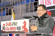 코리아타임뉴스 노승선 기자 | 대구광역시 군위군은 지난 1일 오전 7시 군위종합운동장에서 군위문화관광재단 주최·주관으로 '2026 군위군 복나눔 해맞이 축제'를 성황리에 개최했다. 새해 첫날 이른 새벽부터 군민과 방문객 등 약 1,500여 명이 운집해 새해의 첫 순간을 함께했다. 영하권의 매서운 추위에도 행사장을 가득 메운 인파는 새해 첫 해가 떠오르는 순간 다 함께 소원을 외치며 환호와 박수로 축제의 열기를 한껏 끌어올렸다. 이어 다가족 이벤트 1등의 영광은 구미시에서 방문한 7인 가족에게 돌아갔으며, 한우세트가 전달되는 순간 행사장은 다시 한 번 뜨거운 박수와 환호로 가득 찼다. 특히 지역 봉사단체들이 정성껏 준비한 떡국과 대추차, 어묵 등 나눔 행사는 시작과 동시에 긴 줄이 이어질 만큼 큰 호응을 얻었다. 새해 첫날, 음식을 나누며 서로 안부를 묻는 모습은 ‘복나눔 축제’의 의미를 더욱 깊이 새겼다. 김진열 군위군수는 “병오년 새해 첫날, 많은 분들과 함께 첫 해를 바라보며 복을 나눌 수 있어 뜻깊다.”며, “오늘 맑고 깨끗하게 떠오른 해처럼, 2026년은 장애물 없이