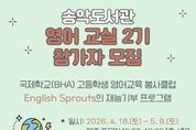 코리아타임뉴스 사회팀 | 제주도교육청 송악도서관은 4월 18일부터 오는 5월 9일까지 청소년 봉사활동을 통해 지역사회의 나눔 가치를 실현하고 어린이들의 외국어 능력 향상을 지원하기 위해 ‘2026년 상반기 도서관 영어 교실 2기’를 운영한다. 영어 교실은 국제학교(BHA) 학생들로 구성된 영어 교육 봉사 클럽 잉글리시 스프라우트(English Sprouts, 회장 김주은, 박하윤)의 재능기부 강의로 진행된다. 수업은 레벨테스트를 통해 수준별로 편성해 영어 교육과 영어 스토리텔링, 영어 놀이 활동으로 구성되며 영어에 익숙하지 않은 어린이들도 즐겁게 참여할 수 있도록 운영된다. 운영 대상은 초등학생 1~6학년 25명이며 매주 토요일에 운영되며 참여를 원하는 경우 제주특별자치도교육청 공공도서관 누리집을 통해 내달 1일부터 선착순으로 신청할 수 있다. 고도현 분관장은 “이번 프로그램이 어린이들이 영어에 대한 흥미를 높이고 자신감을 기르는 계기가 되기를 바란다”며 “앞으로도 지역 학생들이 다양한 교육 경험을 통해 성장할 수 있도록 지속적으로 지원하겠다”고 말했다.