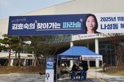 코리아타임뉴스 이아름 기자 | 김효숙 세종특별자치시의회(나성동, 더불어민주당) 부의장이 시민과 직접 소통하고 세종시와 나성동 발전을 위해 고견을 듣는 ‘찾아가는 파라솔’ 행사를 13일 오전 10시부터 오후 5시까지 나성동 행복누림터 앞에서 개최했다. 지난 2023년 11월 의정보고회 개최 이후 더 많은 시민을 만나기 위해 지난해부터 11월이면 야외에 아침부터 저녁까지 파라솔을 펴고 주민과 당원을 만나는 자리를 마련하고 있다. 김효숙 부의장은 “정해진 짧은 시간 동안 이뤄지는 보고회 형식으로는 더 많은 분을 뵙기 어려워 하루 종일 시민을 기다리는 현장 상담 방식을 바꿨다”며 “생각보다 많은 분이 찾아와주셨는데 오전 10시부터 시작인데도 오전 9시 20분부터 기다리고 계시는 시민분도 계셨고, 오가다 편하게 들리거나 지난해에 이어 또 방문하신 단골 주민도 생겼다”고 설명했다. 이어 “우리 지역을 위해 일하는 시의원과 커피 한 잔 하며 편하게 현안에 대해 대화할 수 있다는 것을 가장 좋게 평가하시는 것 같다”며 “나성동 학생들의 통학 및 진학, 도시상징광장 활성화, 어반아트리움 등 상가공실 문제 등 나성동 주요 현안에