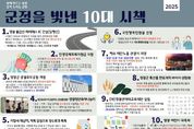 코리아타임뉴스 노승선 기자 | 영광군이 12월 18일 올해 군정을 빛낸 10대 우수 시책을 최종 선정했다고 밝혔다. 이번 선정은 총 52건의 후보 시책을 대상으로 진행된 1차 군정평가와 2차 주민·공무원 설문평가를 거쳐 이루어졌으며, 주민 체감도와 정책 성과, 지역 발전 기여도를 종합적으로 평가한 결과다. 평가는 12월 2일부터 15일까지 2단계로 진행됐다. 1차 군정평가에서는 실무반 26명이 후보 시책 52건을 심사해 상위 20건을 선정했고, 2차 평가에서는 주민과 공무원이 함께 참여하는 설문조사를 통해 최종 10건을 선정했다. 이번 10대 우수시책 중‘영광 불갑산 하이패스 IC 건설(상행선)’이 최고 점수를 받으며, 지역 교통 인프라 강화와 군민 이동 편의 증진에서 큰 성과를 거둔 것으로 평가됐다. 이어 우수시책에는 ▲민생경제회복지원금 지원 ▲영광군 공설추모공원 개원이 포함됐으며, 장려시책으로는 ▲청년과 육아가 공존하는 상생 플랫폼-영광청년육아나눔터 ▲지방세 체납액 카톡 알림 징수효과가 이름을 올렸다. 나머지 5건은 ▲국민행복민원실 선정 ▲백수 해안노을 관광지 지정 ▲