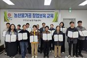 코리아타임뉴스 전북취재본부 | 부안군농업기술센터(소장 김양녕)는 지난달 4일부터 지난 1일까지 총 9회에 걸쳐 진행된 농산물가공 창업보육 교육을 마무리하고 15명의 교육생이 수료한 가운데 수료식을 개최했다고 밝혔다. 이번 교육은 농업인들이 직접 재배한 농산물을 단순 판매하는 방식에서 벗어나 직접 가공하고 상품화해 소득을 높일 수 있는 역량을 키우기 위해 추진됐으며 교육생들은 식품위생법 및 법적표시기준, 농식품가공창업 법적인허가절차, 마케팅 전략 등 실무 중심의 커리큘럼등을 이수했다. 특히 이론에만 그치지 않고 농산물가공센터내 가공장비를 직접 가동해 보는 실습교육도 병행해 가공 장비에 대한 심리적 장벽을 낮추어 교육 종료 후에도 농산물가공센터를 실제 사업 현장으로 적극 활용할 수 있도록 했다. 농업기술센터는 교육을 통해 농산물가공센터의 이용률과 시설 활용도가 크게 향상될 것으로 보고 있으며 이를 통해 지역 농산물의 가공 상품화가 더욱 활발해질 것으로 기대하고 있다. 또 후속 과정으로 예비창업자를 위한 1대 1 맞춤 창업코칭 교육을 실시할 계획이다. 전문가가 직접 농업인과 매칭되어 시제품
